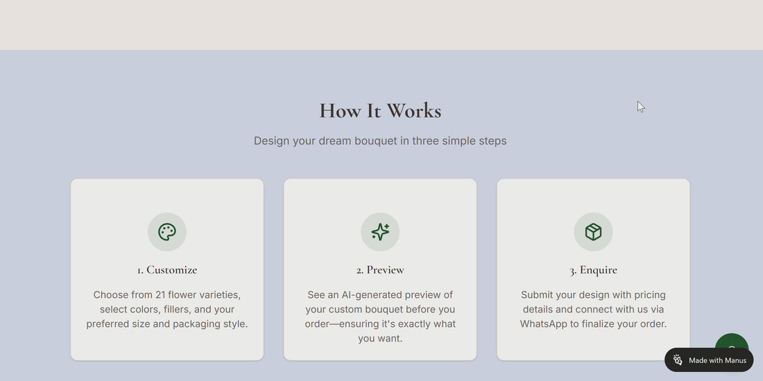 We’ve teamed up with manus.ai to bring you an AI-powered bouquet designer.