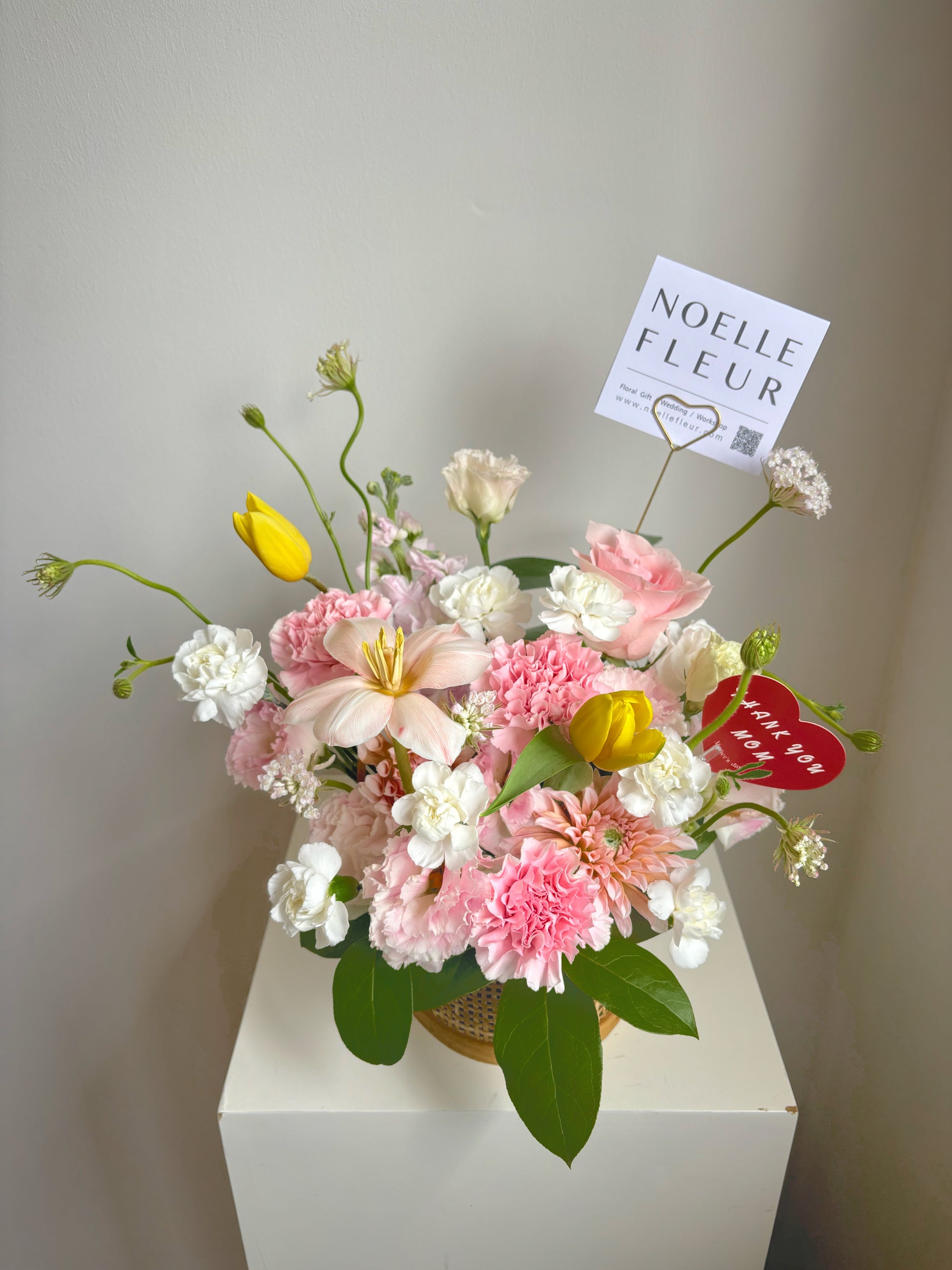 Kindly be aware that due to the natural and seasonal nature of flowers, variations in size, color, and appearance may occur. Each arrangement will be uniquely crafted for the best aesthetic appeal and may not be identical.