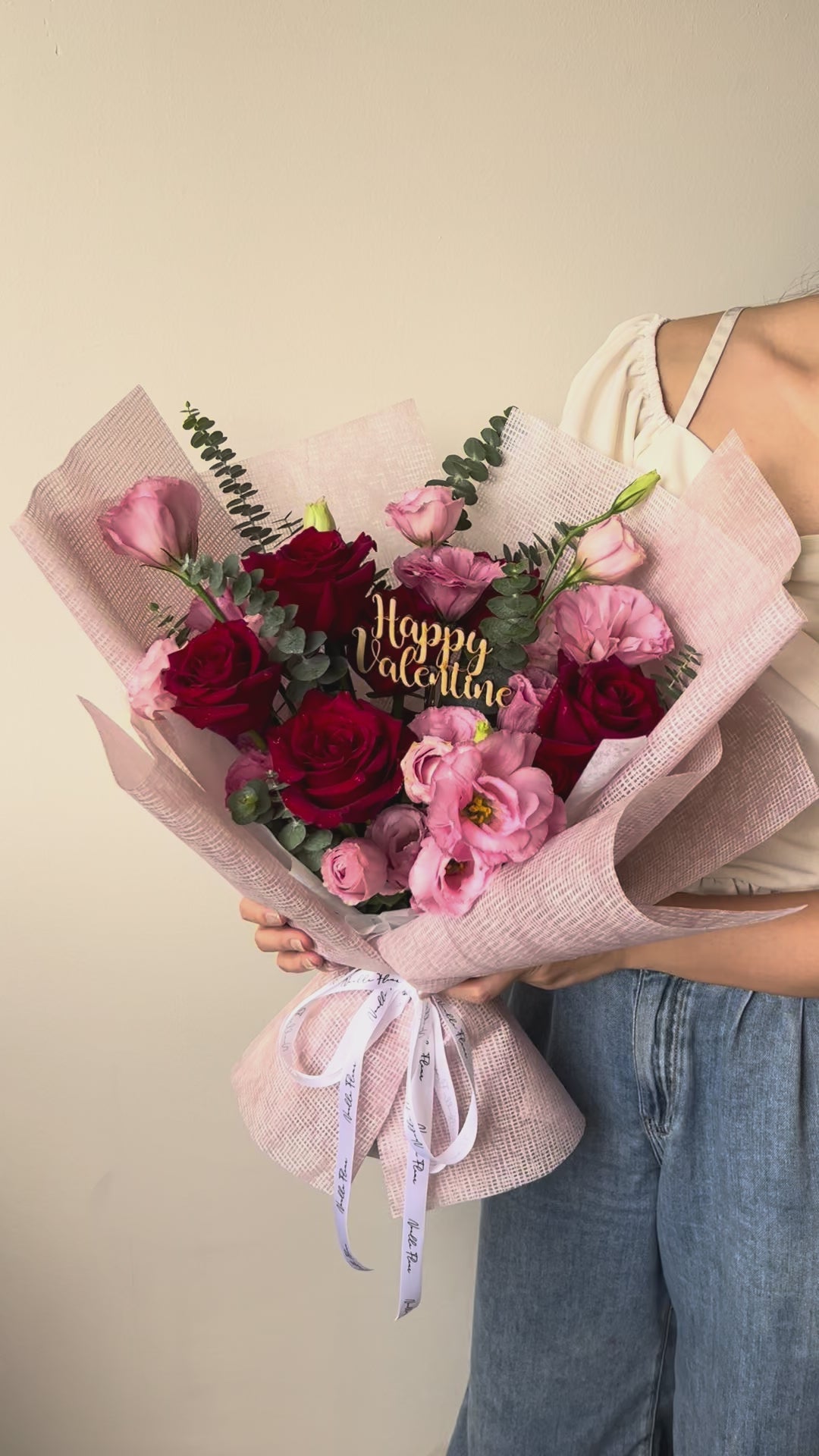 Rose Roses (7 stalks) with Pink Eustoma & Eucalyptus