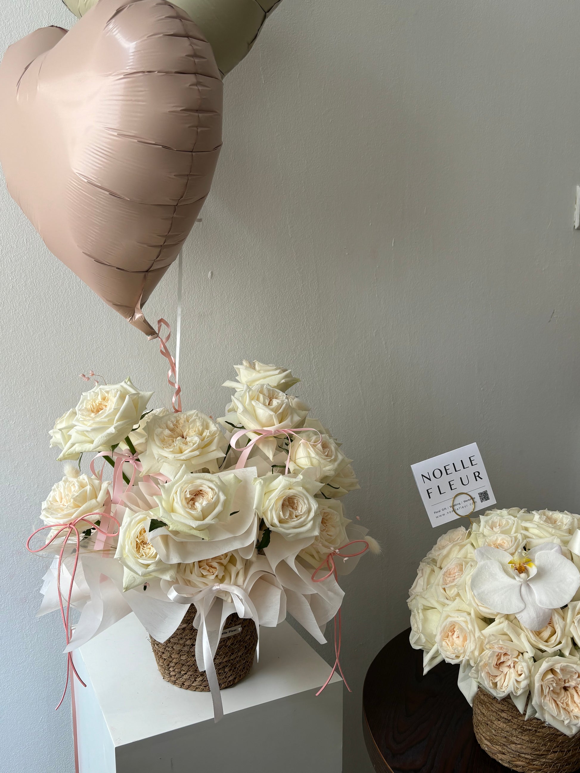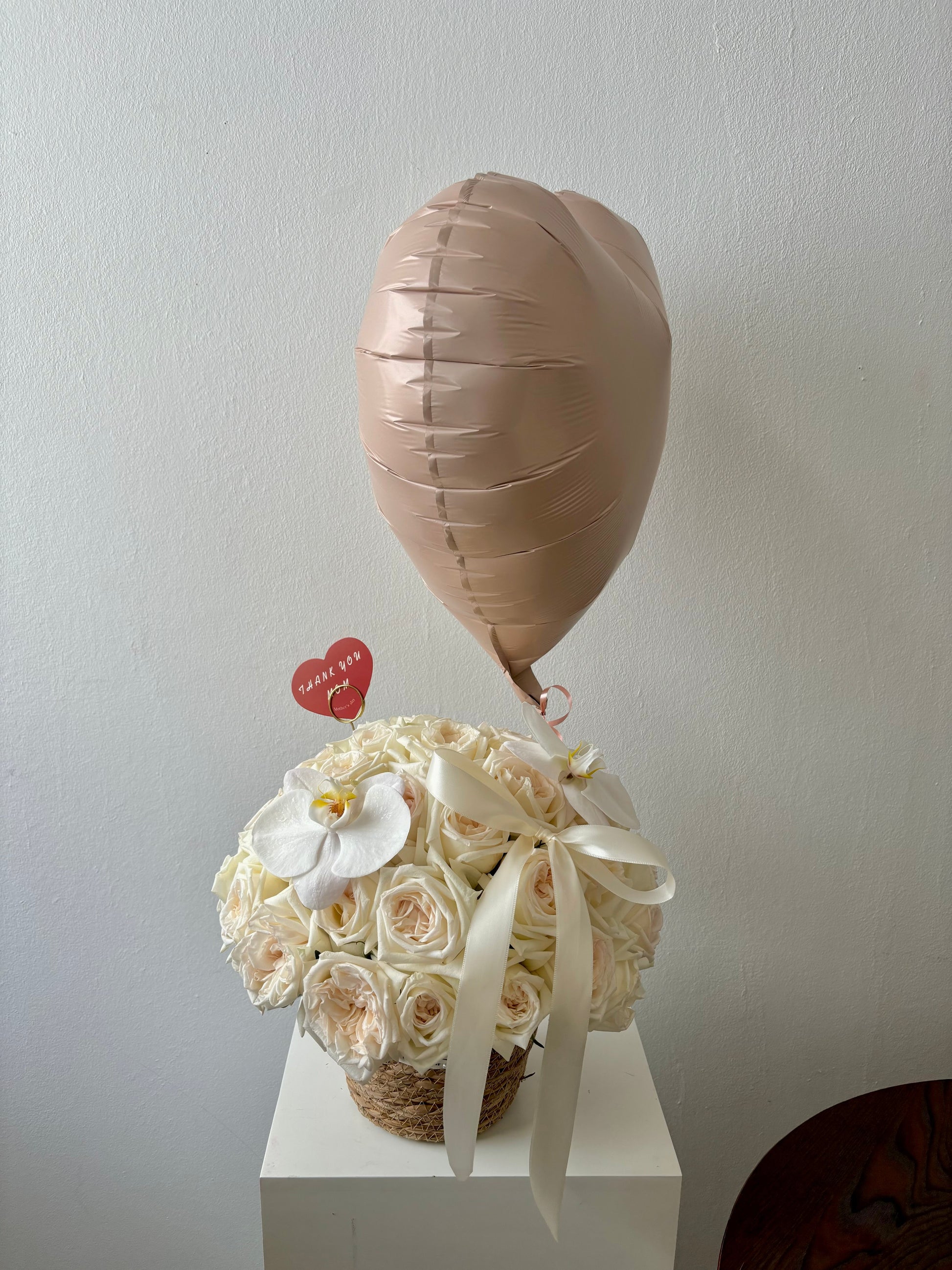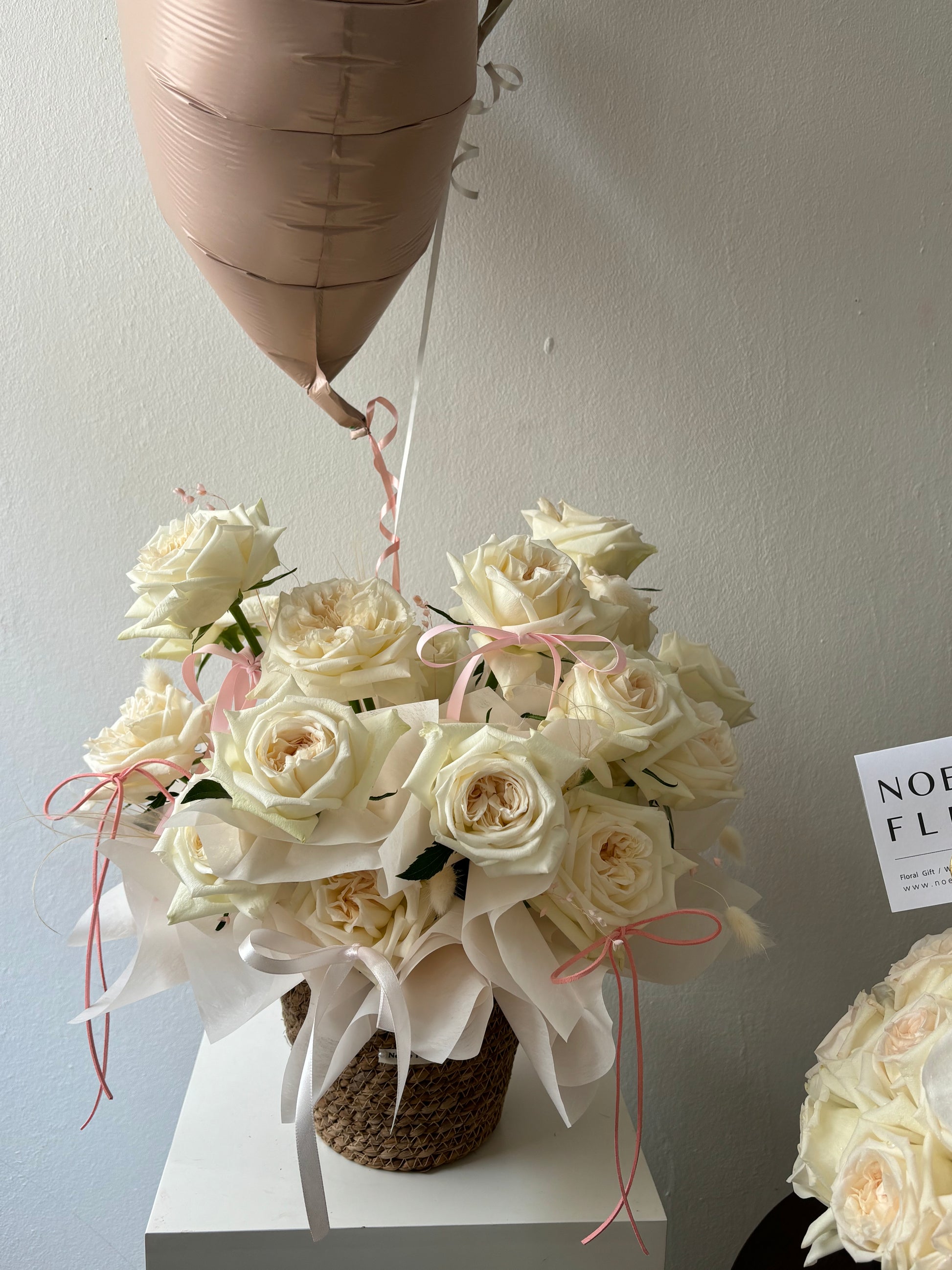 Kindly note the arrangement does not come with helium balloons. Balloons are available for add on.