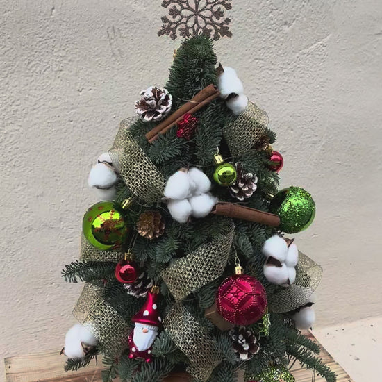 Add a touch of holiday magic to your home with our mini Christmas tree, made from fresh noble fir that fills your space with a delightful, natural fragrance. Perfect for gifting, styling your entryway, or adding a gentle holiday glow to your desk or bedside.