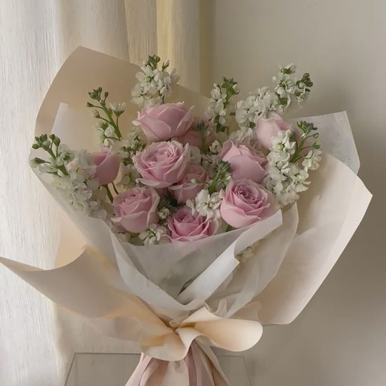 "Rosy Snowfall" Fresh Rose & Matthiola Bouquet